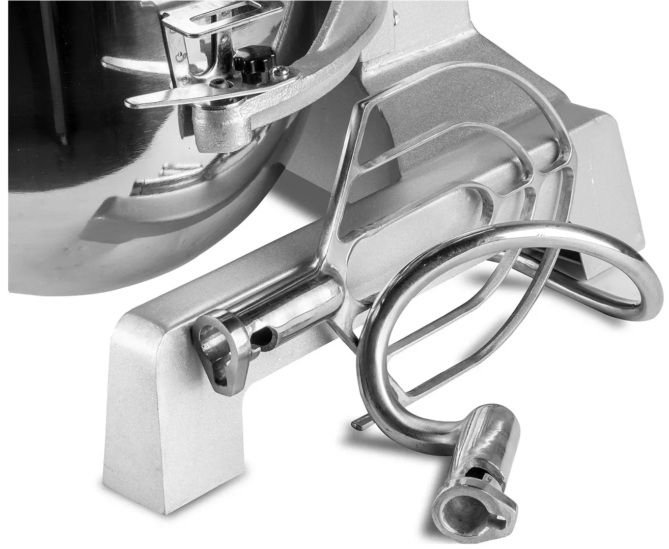 Подвижная откидывающая верхняя часть миксера позволяет легко и удобно устанавливать и снимать дежу и менять насадки