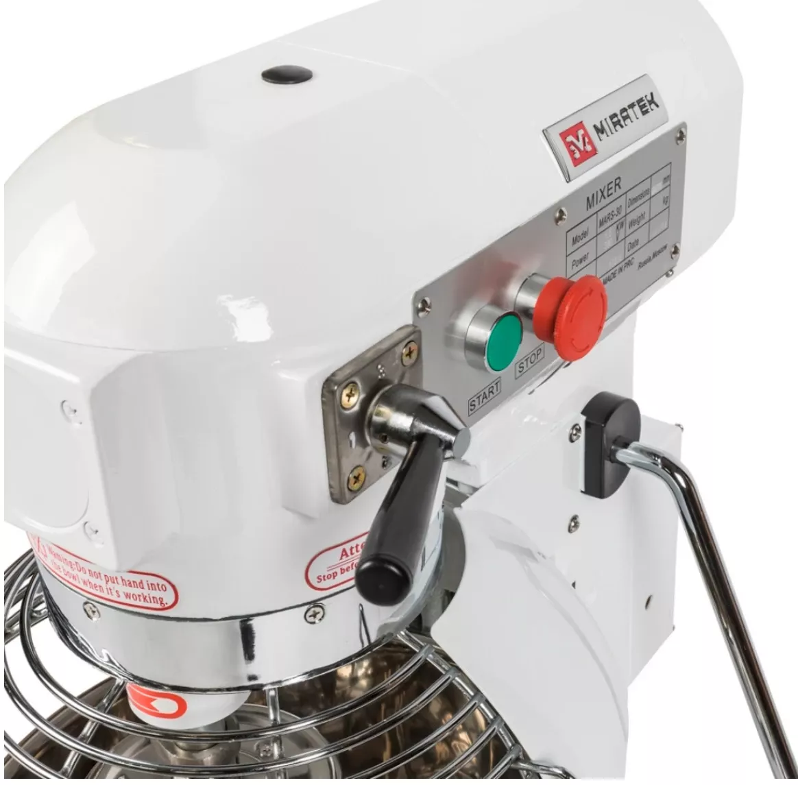 Планетарный миксер Miratek MG-30 (380 В) используется для замешивания теста, кремов (белкового, заварного, масляного и т.д.), суфле, муссов, бисквитного, песочного, дрожжевого (с высокой влажностью), блинного, заварного теста на предприятиях общественного питания и торговли. Имеет несколько уровней регулировки скорости и насадки разного типа, которые могут быть выбраны для замешивания теста, кремов (белкового, заварного, масляного и т.д.), суфле, муссов, бисквитного, песочного, дрожжевого (с высокой влажностью), блинного, заварного теста.