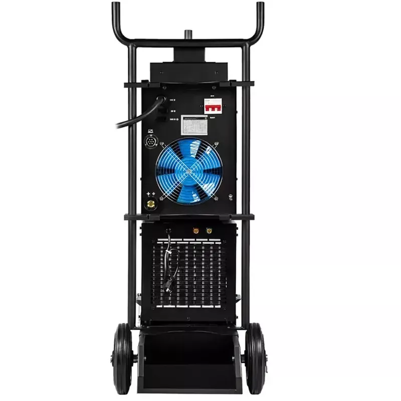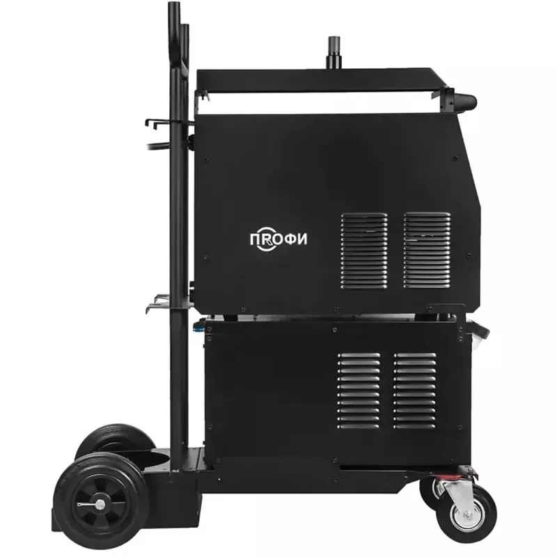 Полуавтомат ПРОФИ MIG 500 DP SYN FW поставляется с блоком водяного охлаждения объемом до 10 литров и с тележкой-платформой, для легкого и комфортного перемещения и эксплуатацию оборудования. Тележка оснащена надежной усиленной конструкцией. На нее можно установить сварочный источник, выносной подающий механизм, блок жидкостного охлаждения и газовый баллон объемом 40 литров.