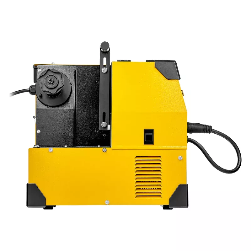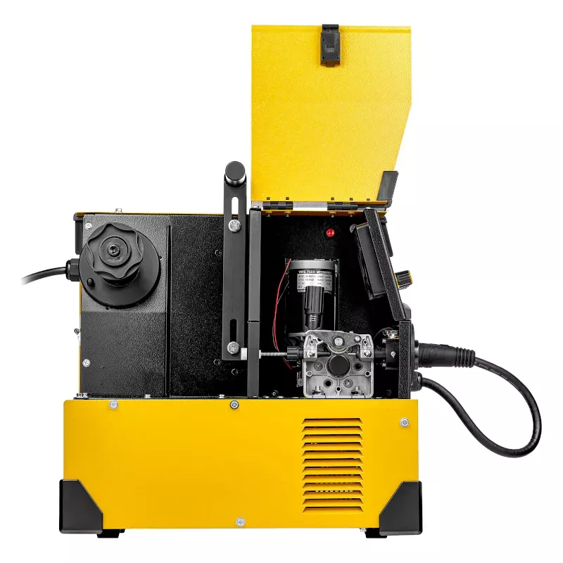 - Металлический механизм подачи проволоки. Используется сварочная проволока диаметром от 0,8 до 1,2 мм. Можно установить катушку с проволокой весом до 18 кг (D300) и регулировать скорость подачи проволоки от 3 до 13 м/мин.