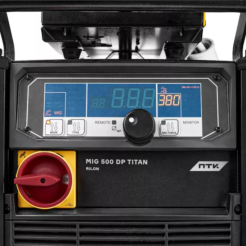 RILON MIG 500 DP TITAN – аппарат полуавтоматической сварки в среде защитных газов с дополнительной функцией ручной дуговой сварки (MMA), аргонодуговой сварки (Lift TIG) и с функцией воздушно-дуговой строжки металла (Carbon Arc Gouging).
