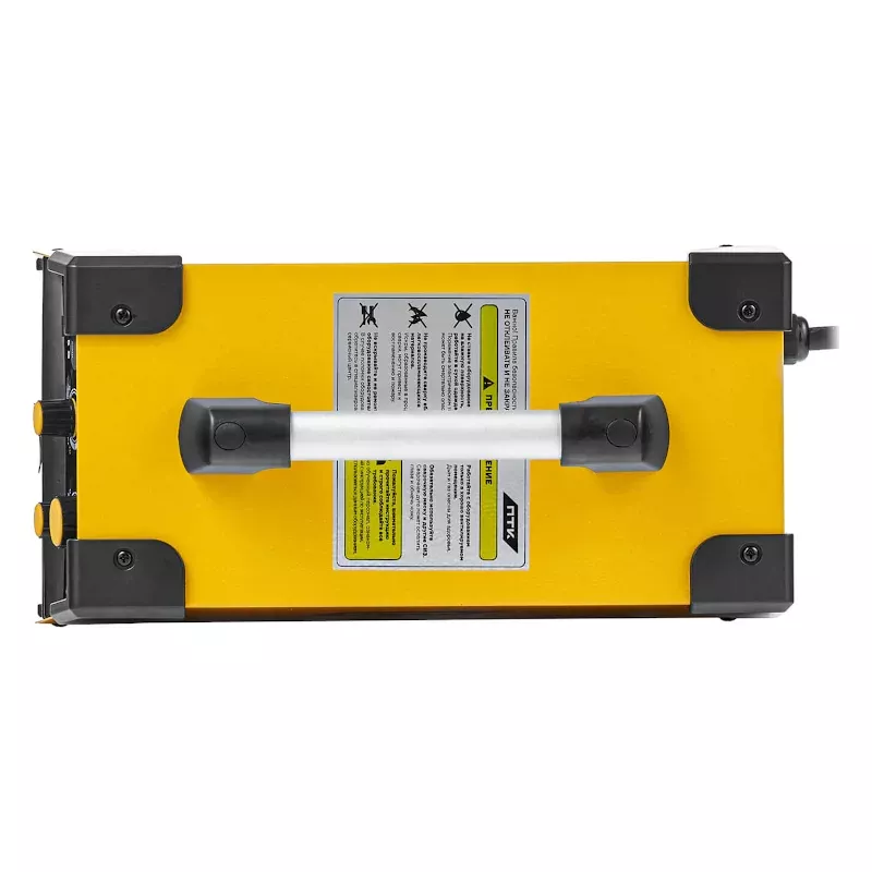 Управление аппаратом выполняется с помощью регуляторов на передней панели или с подключенного пульта ДУ на расстоянии до 20 м. Светодиодный индикатор сигнализирует о неисправности. На цифровом дисплее отображаются текущие настройки сварочного процесса. Вы можете изменять ток сварки в зависимости от толщины металла и диаметра электрода. Отдельные два регулятора отвечают за установку значений для функций горячего старта и форсажа дуги. Это позволяет максимально точно настроить сварочный инвертор ММА ПТК под конкретную задачу и условия эксплуатации. Функция VRD обеспечивает безопасность сварщика за счет снижения напряжения до минимального значения при замыкании сети или в условиях повышенной влажности.