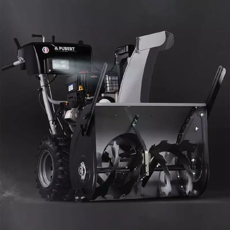 Двигатель запускается при помощи ключа зажигания, который оператору нужно всего лишь один раз повернуть, не прилагая никаких усилий. Pubert 1101-28i отлично передвигается не только по ровной поверхности, поскольку на нем есть специальные полозья. Именно они не только повышают плавность и скорость хода, но еще и приподнимают ковш над уровнем земли, тем самым защищая его от любых повреждений, которые могут возникнуть в том случае, если снегоуборщик наедет на камень или кирпич, не видимый оператору из-за снега. Такая модель агрегатов часто применяется на территории с буграми и булыжниками, поскольку машина стопроцентно качественно и быстро уберет весь снег и при этом гарантированно не выйдет из строя.