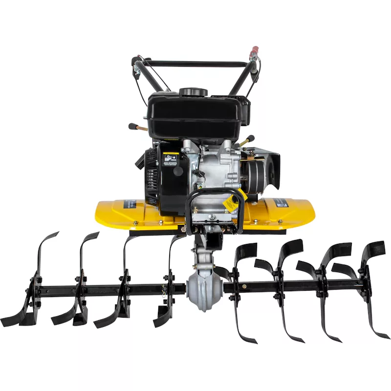 Мощность инструмента составляет 7 л.с., что позволяет применять его в различных сферах: культивации, рыхлении и обработки почв любой плотности. Извлечение прибора из земли по окончании использования происходит просто благодаря задней передаче. Вам не придется применять физическую силу, если инструмент застрял в почве.