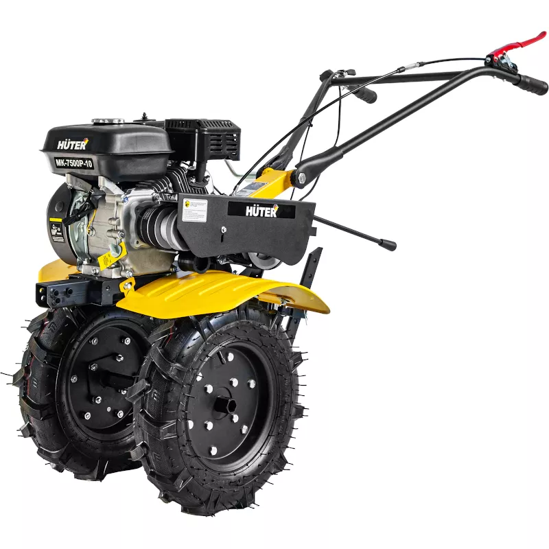 Сельскохозяйственная машина Huter MK-7500Р-10 мощностью 5,52 кВт оснащена прочными стальными фрезами диаметром 30 см. Они выдерживают большие нагрузки и способны перепахивать тяжёлую и мокрую землю, не затупляясь и не деформируясь при интенсивном использовании. Чугунный корпус редуктора устойчив к механическим повреждениям, он защищает двигатель от попадания камней и прочих твердых предметов.