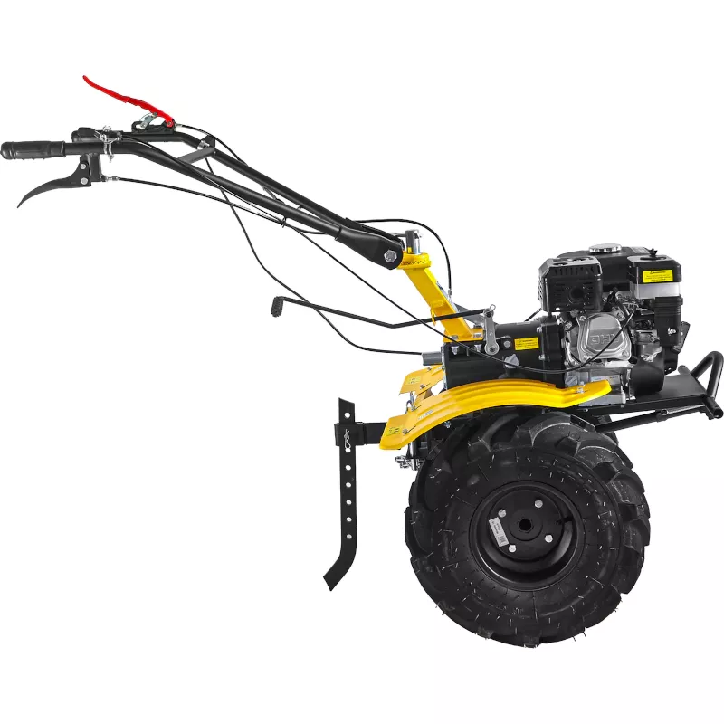 Стальной бензобак объемом 3,6 л обеспечивает длительную непрерывную работу культиватора без необходимости частой дозаправки. Автоматическая защита двигателя от сухого хода предотвращает поломку узла. При недостаточном уровне масла в картере срабатывает предохранитель и останавливает работу механизма.