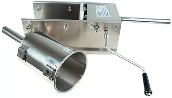 Колбасные шприцы отличаются размерами выходных воронок, что позволяет найти подходящую модель для изготовления сосисок или колбас.