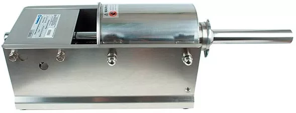 Шприц колбасный Foodatlas HS-3L используется на предприятиях общественного питания и торговли для изготовления сосисок, сарделек и другой продукции.
