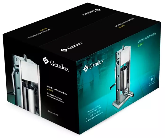 Благодаря вертикальной форме, шприц Gemlux значительно экономит пространство на кухне и может быть использован на небольших производственных площадках.