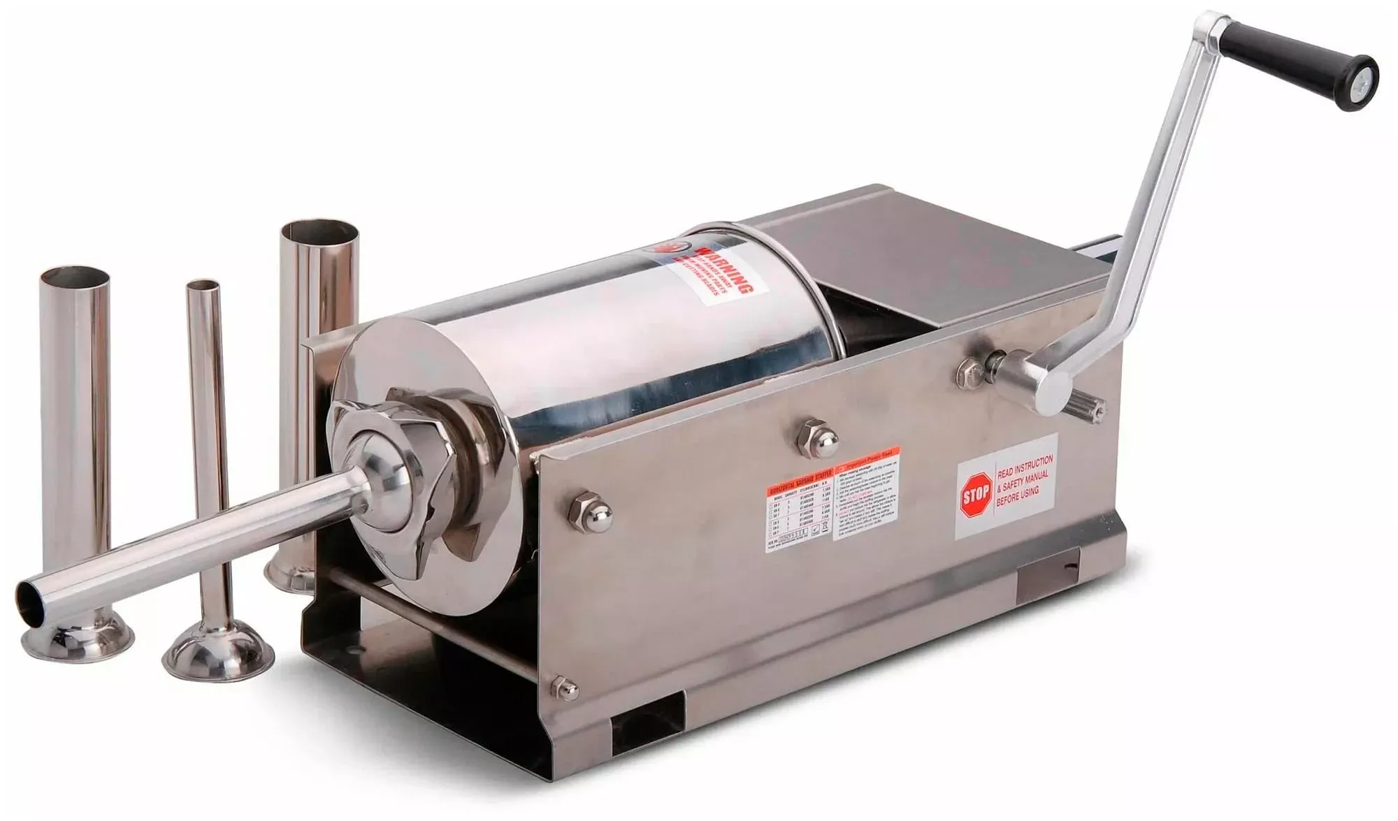 Шприц колбасный Hakka Brother SH-3 из нержавеющей стали применяется для набивки колбасных оболочек фаршем грубой консистенции.
