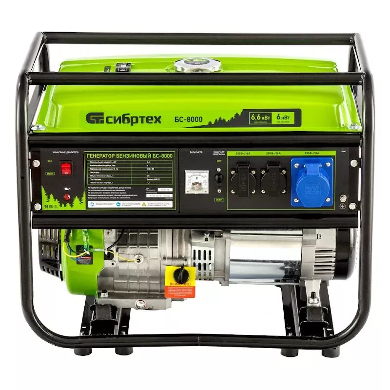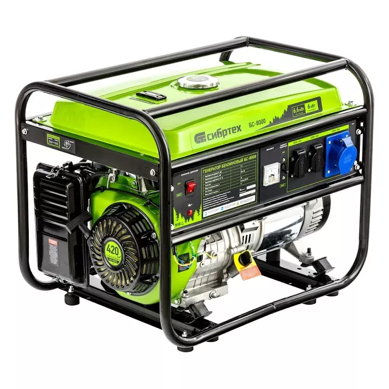 Бензиновый генератор Сибртех БС-8000 с максимальной мощностью 6,6 кВт подходит для организации электропитания в торговой точке, гараже, на строительной площадке или в домашней мастерской. Данная модель оснащена регулятором напряжения AVR, который обеспечивает стабильное и постоянное питание техники.