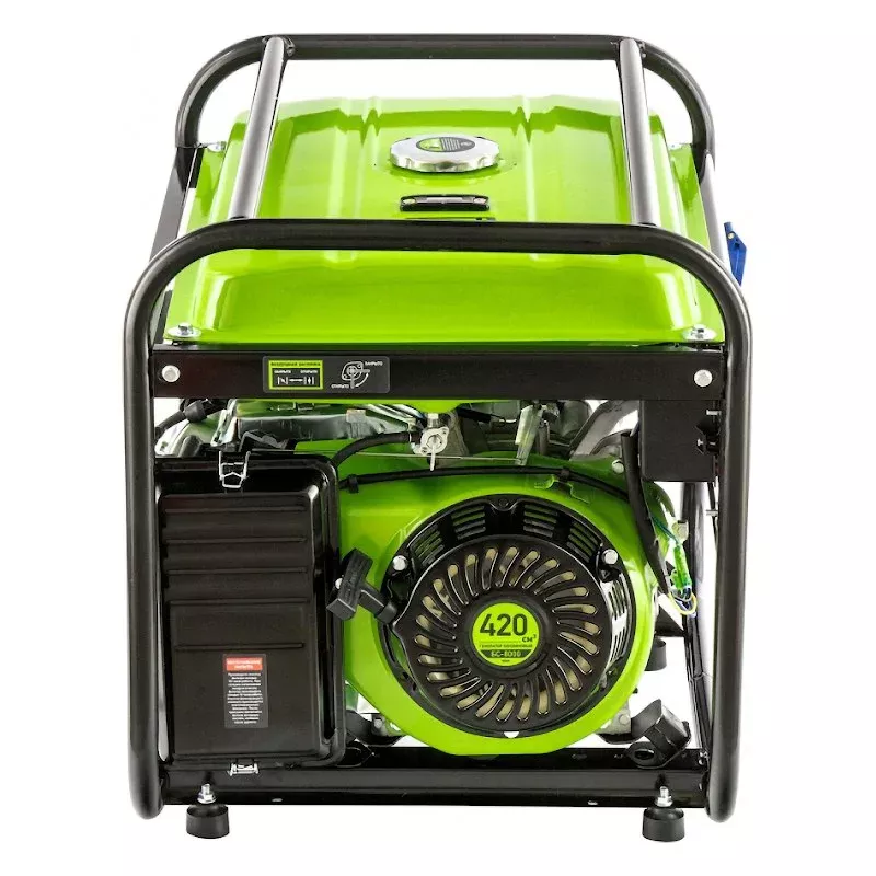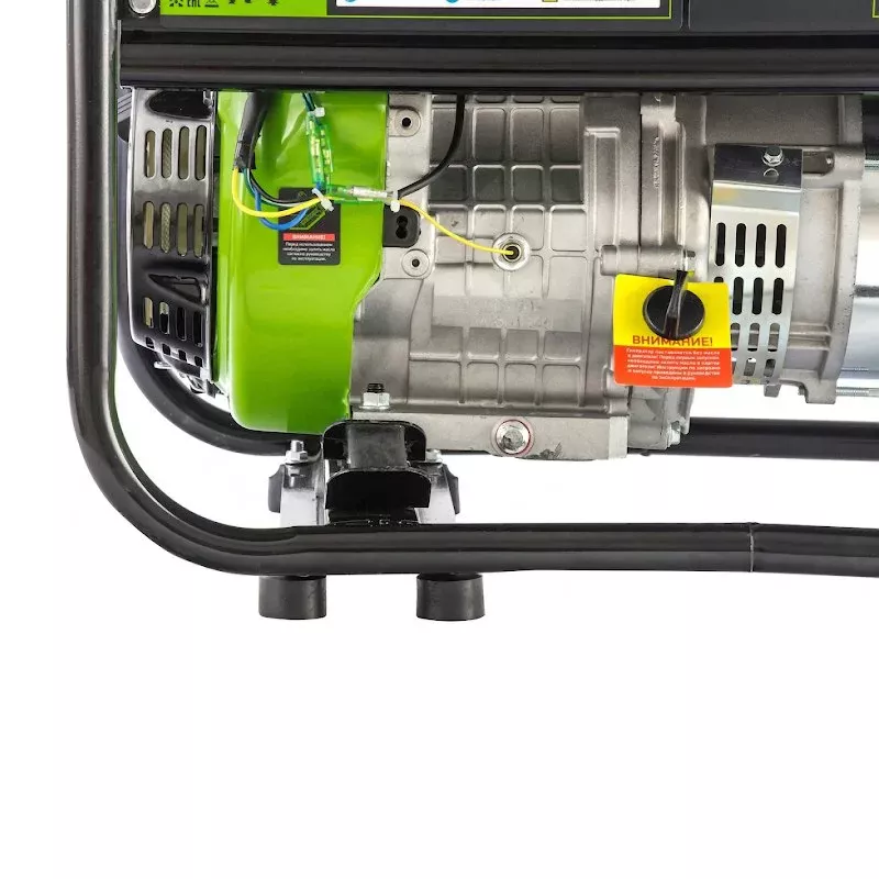 Бензогенератор Сибртех БС-8000 открытого типа не перегревается и обеспечивает беспрепятственный доступ ко всем важным узлам для техобслуживания. В качестве защиты от случайных механических повреждений используется металлическая рама. Ее верхняя часть образует ручки для переноски, а нижняя служит устойчивым основанием. Обмотка синхронного альтернатора двигателя выполнена из меди. Этот материал намного долговечнее алюминия и не подвергается сильному нагреву во время работы. В верхней части корпуса расположена широкая горловина для удобной заправки топливного бака. Крышка легко откручивается одной рукой.