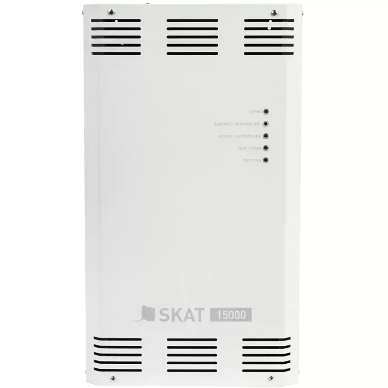 Нагрузка отключается, если температура трансформатора превышает предел в 90 °С. После охлаждения за счет встроенных вентиляторов происходит автоматическое подключение. Благодаря пяти ступеням стабилизации однофазный стабилизатор напряжения SKAT ST-15000 обеспечивает высокую скорость и точность стабилизации, плавность перехода. В случае перегрузки, неисправности силовых ключей или короткого замыкания мощное реле отключает устройство.
