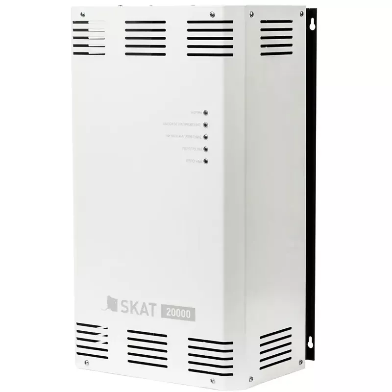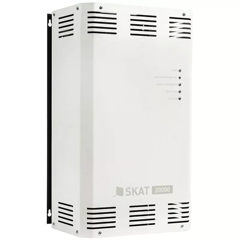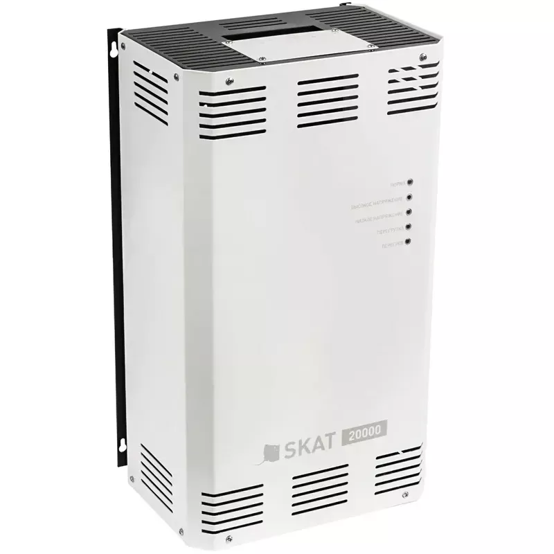 Стабилизатор напряжения SKAT ST-20000 рассчитан на подключение оборудования с потребляемой номинальной мощностью до 13800 Вт. Широкий рабочий диапазон входного напряжения от 140 до 275 В позволяет обеспечить качественное питание нагрузки. Точность стабилизации составляет 7%; скорость переключения — 0,01 секунды.