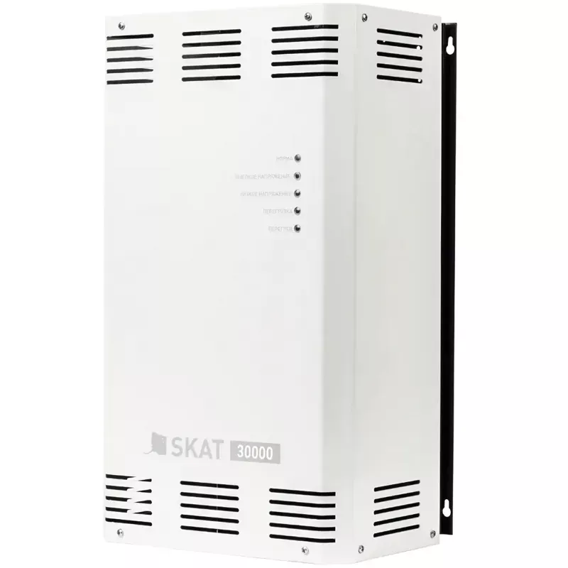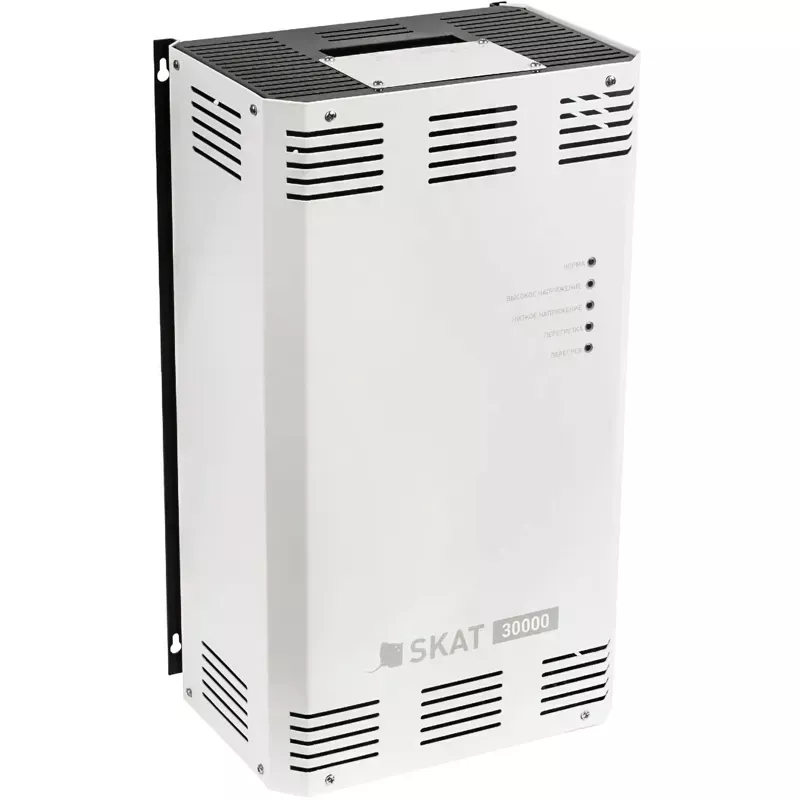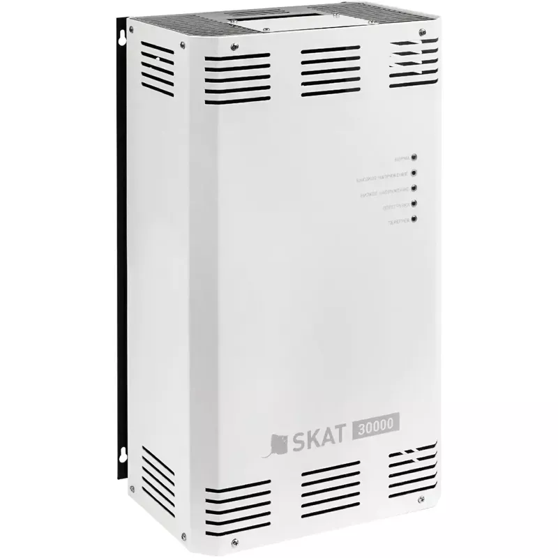 Стабилизатор SKAT ST 30000 - это высококачественное устройство для защиты электроприборов от перепадов и скачков напряжения в сети. Он обеспечивает стабильное выходное напряжение в диапазоне 205-235 В при входном напряжении от 145 до 275 В. Стабилизатор имеет пять ступеней стабилизации и быстро реагирует на изменения в сети, переключаясь за 10 мс.