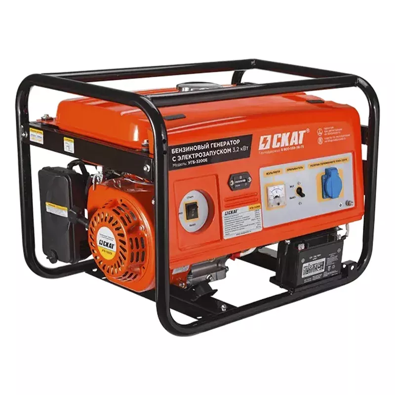 Бензиновый генератор СКАТ УГБ-3200Е мощностью 3,2 кВт представляет собой мобильное оборудование как для бытового, так и для профессионального использования. Служит источником питания различных приборов, когда нет возможности подключится к электросети.