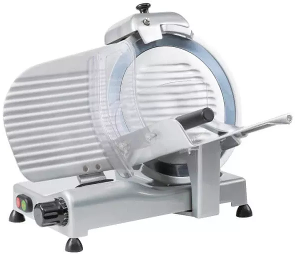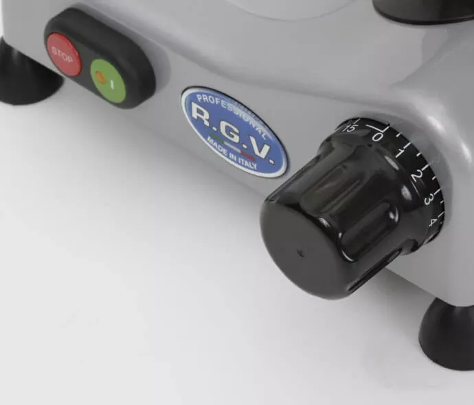 Слайсер Rgv LUXURY 300 ES PROF предназначен для профессионального использования. Полуавтоматический гравитационный слайсер для нарезки колбасы, ветчины, мясных деликатесов применяется на крупных предприятиях общественного питания, фабриках-кухнях, занимающихся производством полуфабрикатов.