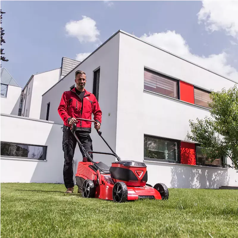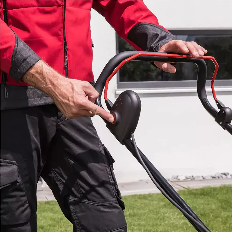 Стальной корпус газонокосилки защищает внутренние элементы от повреждений при случайном столкновении с предметами. Это обеспечивает длительный срок эксплуатации техники.
