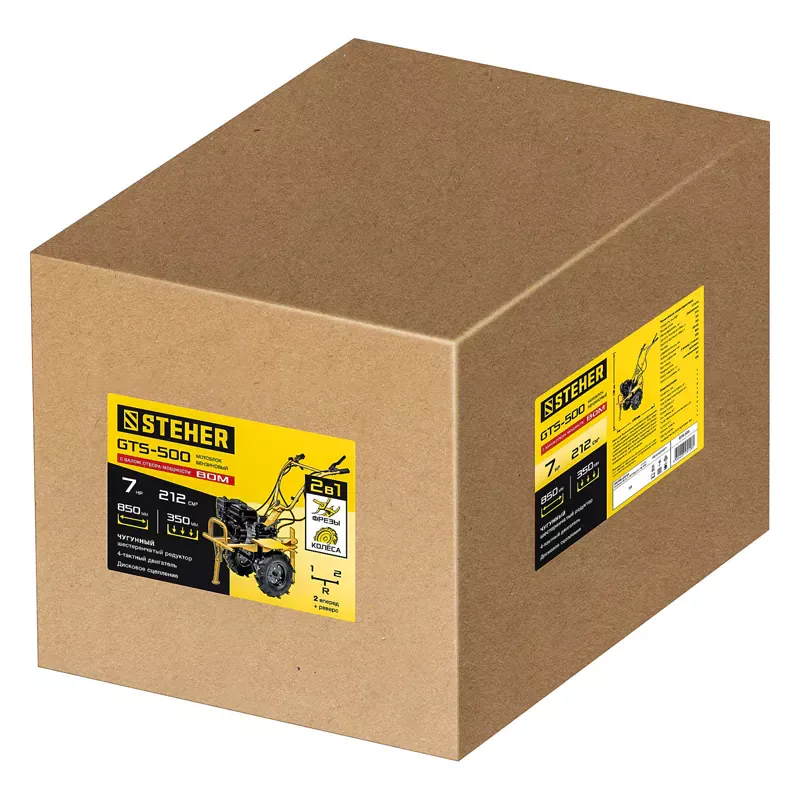 Бензиновый мотоблок STEHER GTS-500 — надежный помощник для хозяйственных и агротехнических работ на даче или приусадебном участке площадью более 20 соток. Маневренная модель с 3-х скоростным чугунным редуктором, комплектом из 18 фрез и 2 колес используется для рыхления и культивации почвы. Вал отбора мощности существенно расширяет спектр совместимого дополнительного оборудования.