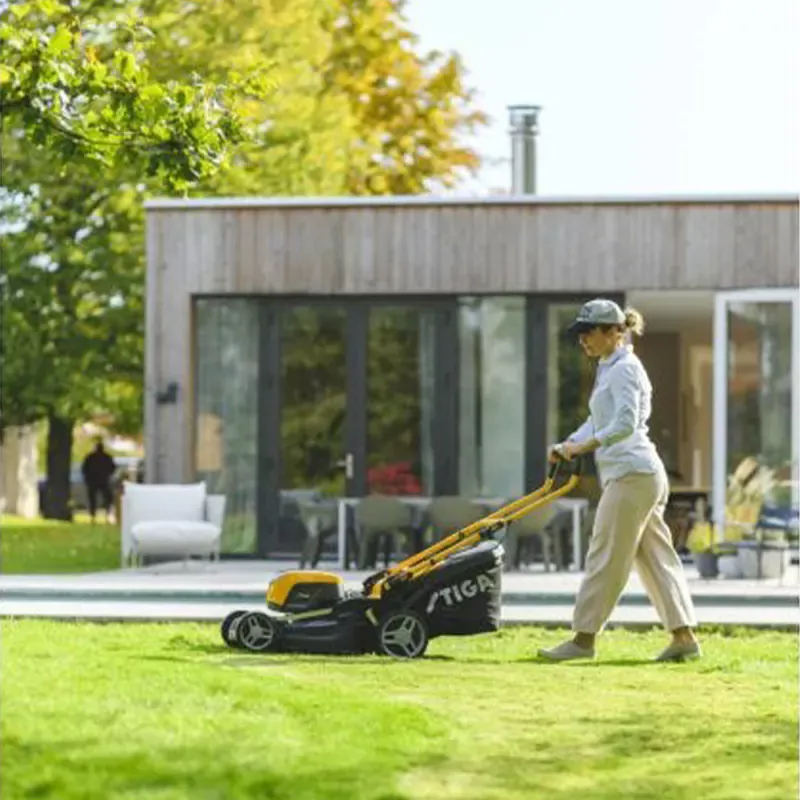 Экологичная газонокосилка STIGA Combi 50 SQ DAE питается от системы синхронизируемых аккумуляторов нового поколения 500 Series System на 48 В, которая обеспечивает тихую работу без вредных выбросов и практически не требует обслуживания.