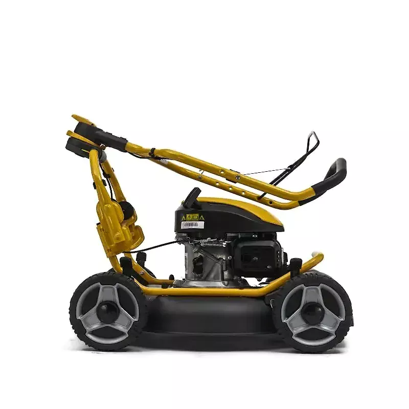 Другие ключевые особенности газонокосилки включают наличие стальной платформы для прочности и долговечности; эргономичная рукоятка с мягкой накладкой для повышения комфорта.