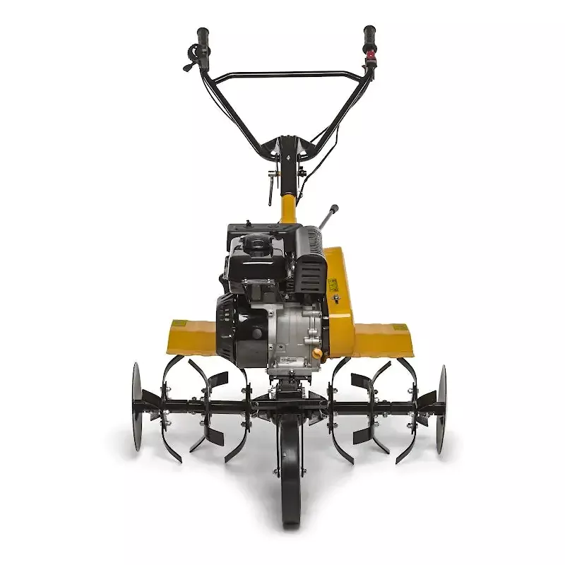 SRC 685 RG оснащен 6-ю фрезами (по 3 на каждой стороне), ширина обработки - 85см., глубина - 15см. 4-тактный бензиновый двигатель объемом 182 куб.см. имеет полезную выходную мощность 3,5 кВт и 3 передачи (2 передние и 1 задняя), обеспечивающие высокую маневренность.