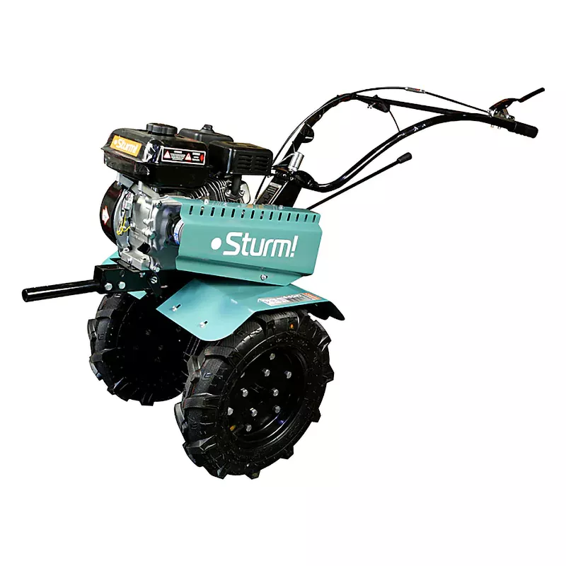 Благодаря большим колесам с рельефными протекторами мотоблок Sturm! GK827CI10 легко передвигается по бездорожью. Широкие металлические крылья служат для защиты от вращающихся частей мотоблока и летящих во время работы комьев земли. Шестеренчато-цепной редуктор имеет долговечный чугунный корпус и помещен в масляную ванну для снижения риска износа контактирующих деталей.