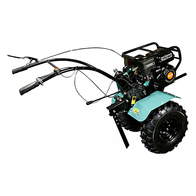 Мотоблок бензиновый Sturm! GK847CI19 — 3-х скоростная модель (понижающая, основная и повышающая) с чугунным редуктором и формованными крыльями, на внушительных колесах 19*7-8. Удобный руль с регулировкой вверх-вниз/влево-вправо.