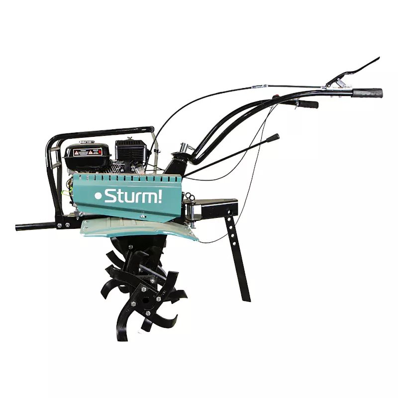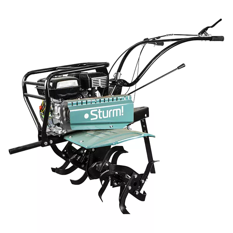 Бензиновый мотоблок Sturm GK9313G12 – надежная и удобная в эксплуатации модель с восемью передачами, ременным приводом и чугунным редуктором. Устройство оснащено 24 острыми фрезами для рыхления почвы, допускает навешивание снежного отвала, окучника, тележки и другого дополнительного оборудования.