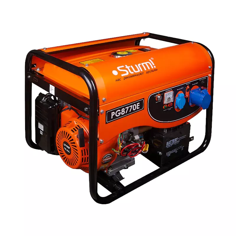 Бензиновый генератор Sturm! PG8770E - универсальная модель для подключения большого количества потребителей или работы с высоконагруженным оборудованием.