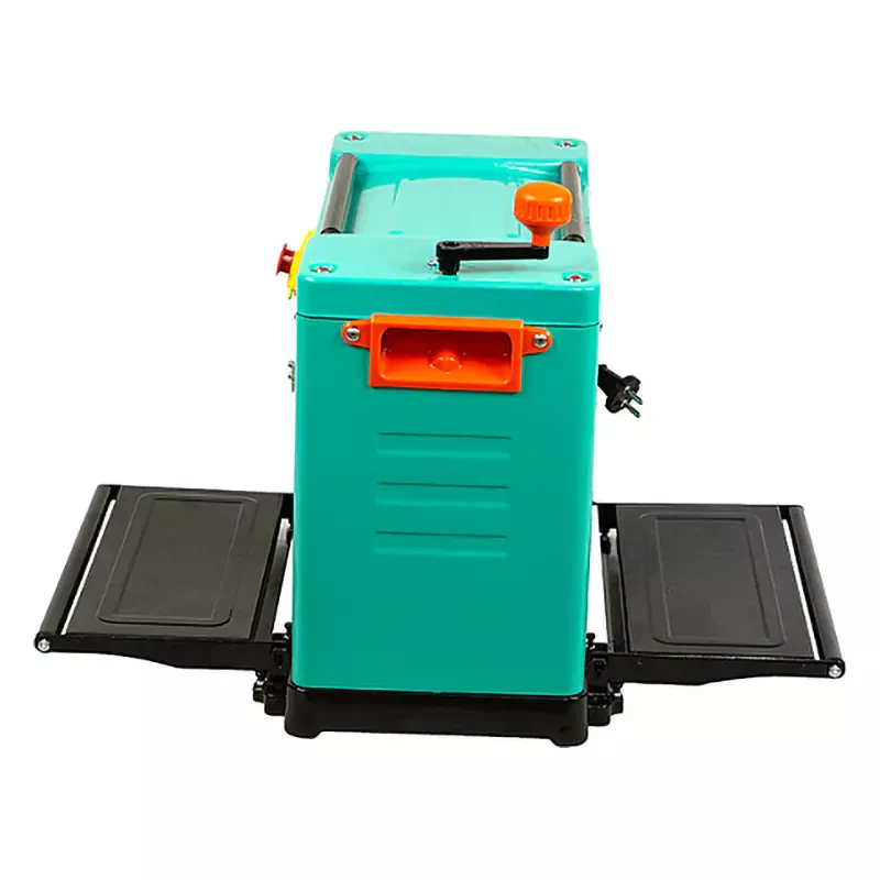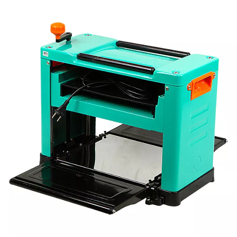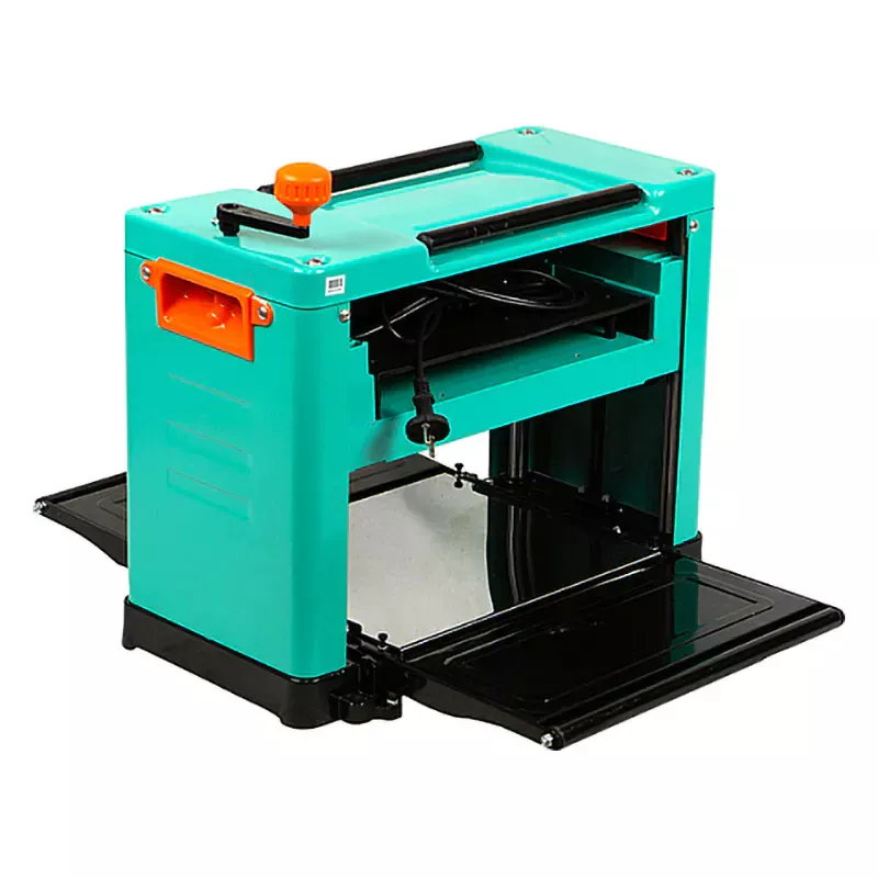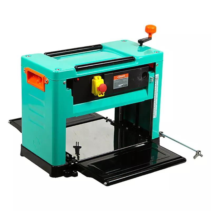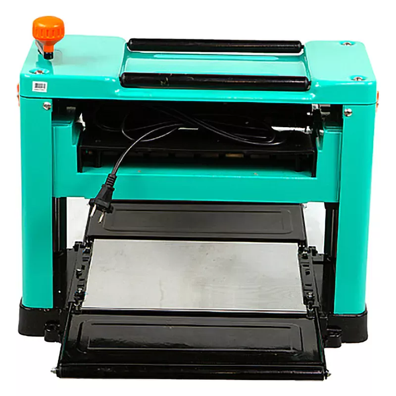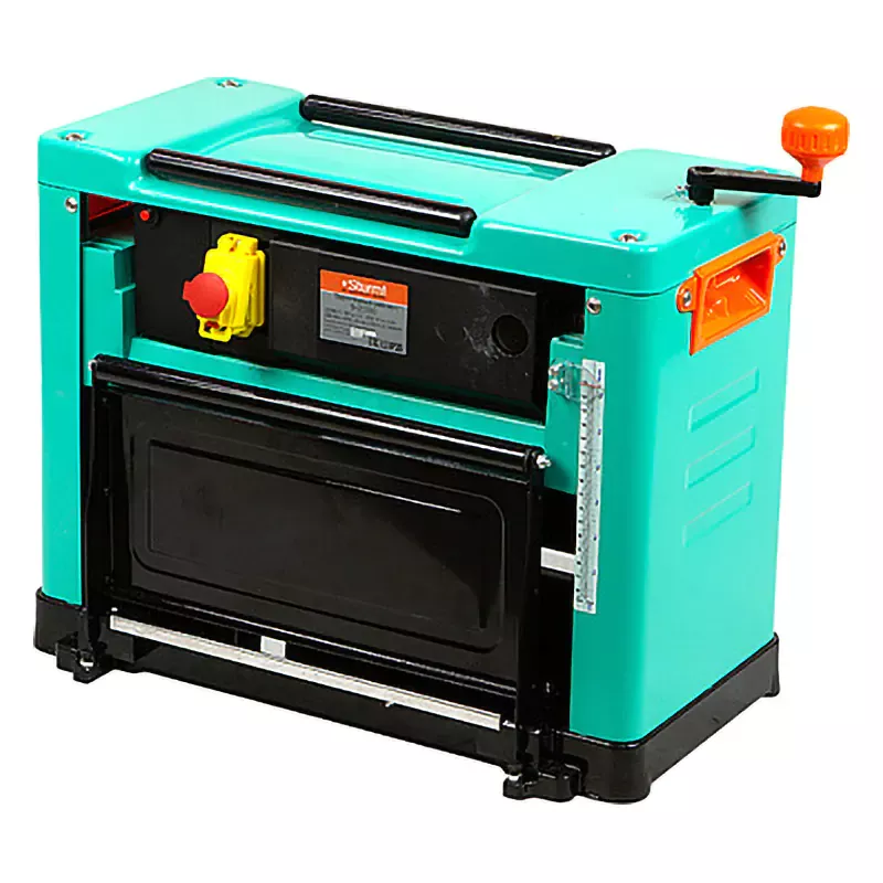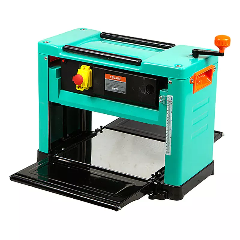 Ножи из быстрорежущей стали HSS подходят для обработки пород древесины разной степени твердости. Электромагнитный выключатель обеспечивает дополнительную безопасность и исключает риск случайного включения при перебоях в электросети. Станок оснащен боковыми рукоятками для удобства переноски в рабочей зоне.