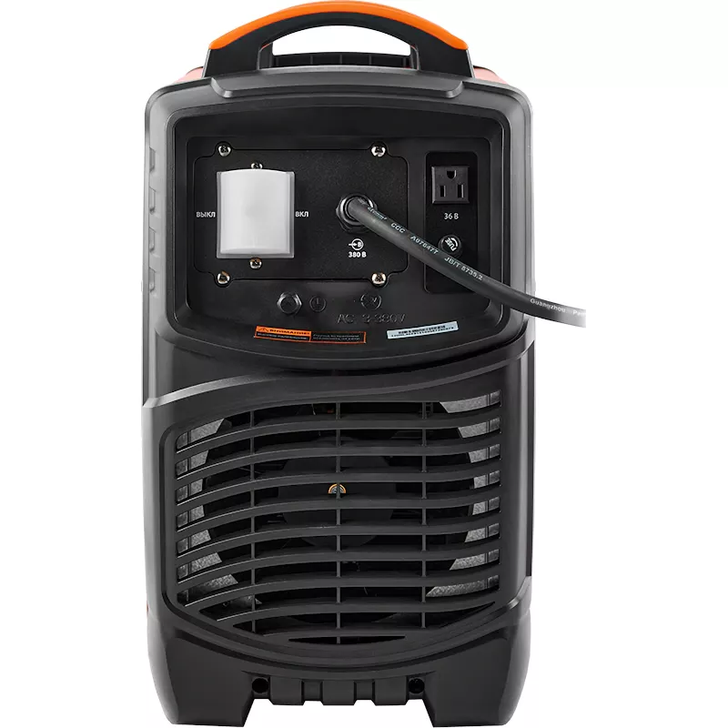 Сварочный инвертор Сварог PRO SMART MIG 500 максимальной мощностью 22,52 кВт рассчитан на эксплуатацию в суровых условиях при температуре окружающего воздуха -30_С. Данное профессиональное оборудование служит для сварки алюминия, меди, титана, нержавеющих, высоко- и низкоуглеродистых сталей и сплавов. В отдельный механизм подачи сварочной проволоки можно заправлять катушки весом до 20 кг. С помощью аппарата, работающего в диапазоне сварочного тока 50–500 А, можно выполнять следующие виды сварки: покрытыми электродами 1,6–6,0 мм, аргонодуговую TIG Lift, проволокой в среде защитных газов MIG/MAG с автоматической подачей. Устройство работает от трехфазной сети с питающим напряжением 380 В.