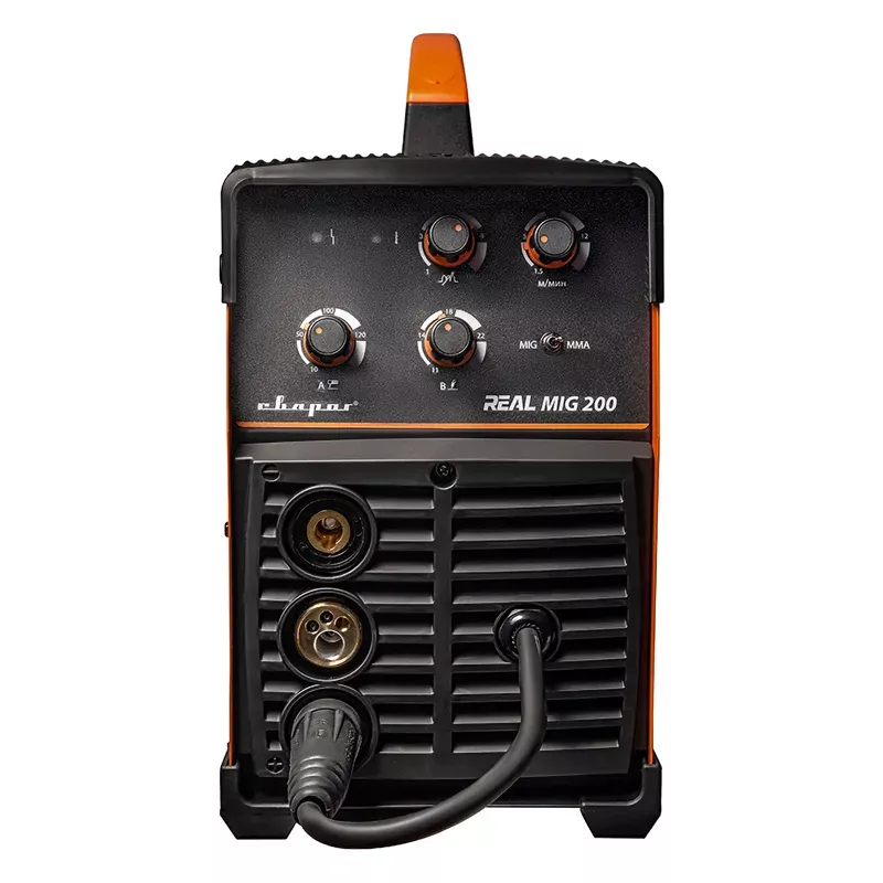 Сварочный инвертор Сварог REAL MIG 200 N24002N работает в режимах MMA и MIG/MAG, а также поддерживает регулировку сварочного тока от 10 до 200 А. Ролики рассчитаны на проволоку сечением 0,6, а также 0,8 и 1 мм.