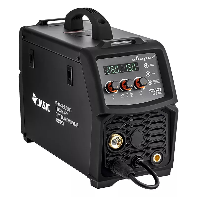 Сварочник с инверторной технологией стабильно работает при скачках и проседании напряжения до 120 В. Горелка поддерживает работу в двух- и четырехтактном режимах для удобства выполнения коротких и длинных швов. Мощные вентиляторы обеспечивают эффективное охлаждение. Сварочный аппарат Сварог REAL SMART MIG 200 BLACK N2A5 отличается небольшим весом и компактными размерами. Его удобно переносить и транспортировать благодаря наличию прочной верхней ручки.