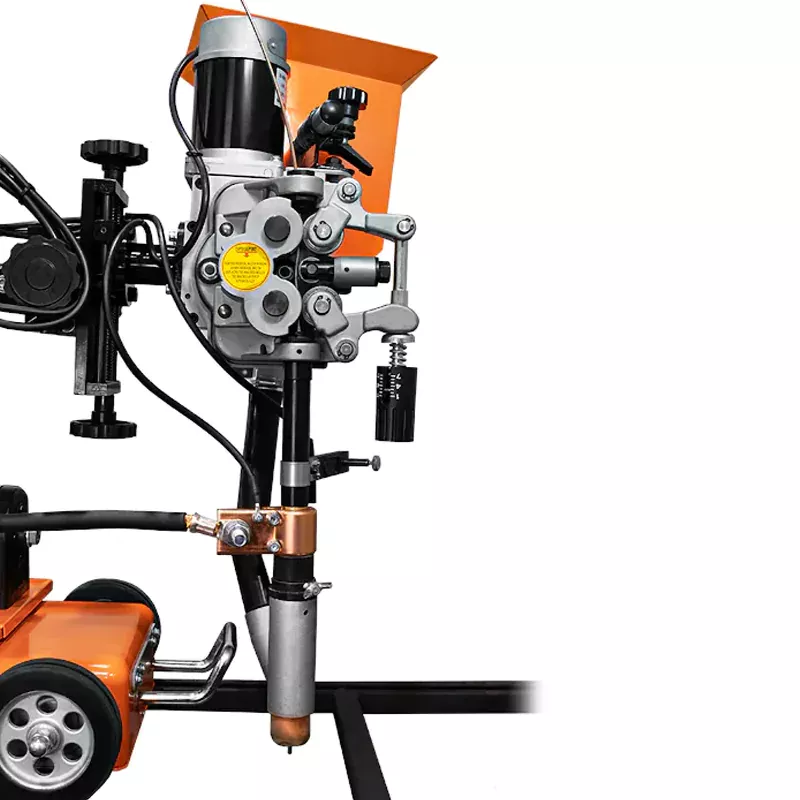 Продольные балки с раздельной конструкцией позволяют устанавливать оборудование даже в сложных местах. Карета подходит для сварки в лодочку. За счет полного привода трактор движется равномерно даже по наклонной поверхности. Электронная плата защищена силиконом для безопасной работы в запыленных и влажных помещениях.