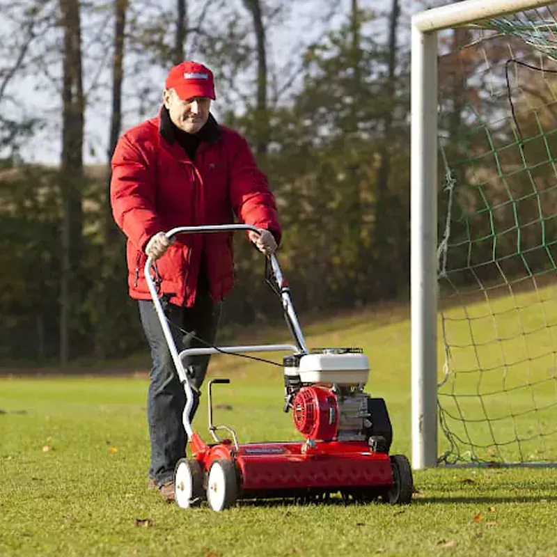 Профессиональный скарификатор TIELBUERGER TV410 AI-046-201TS производит аэрацию почвы и удаление мусора с газона.