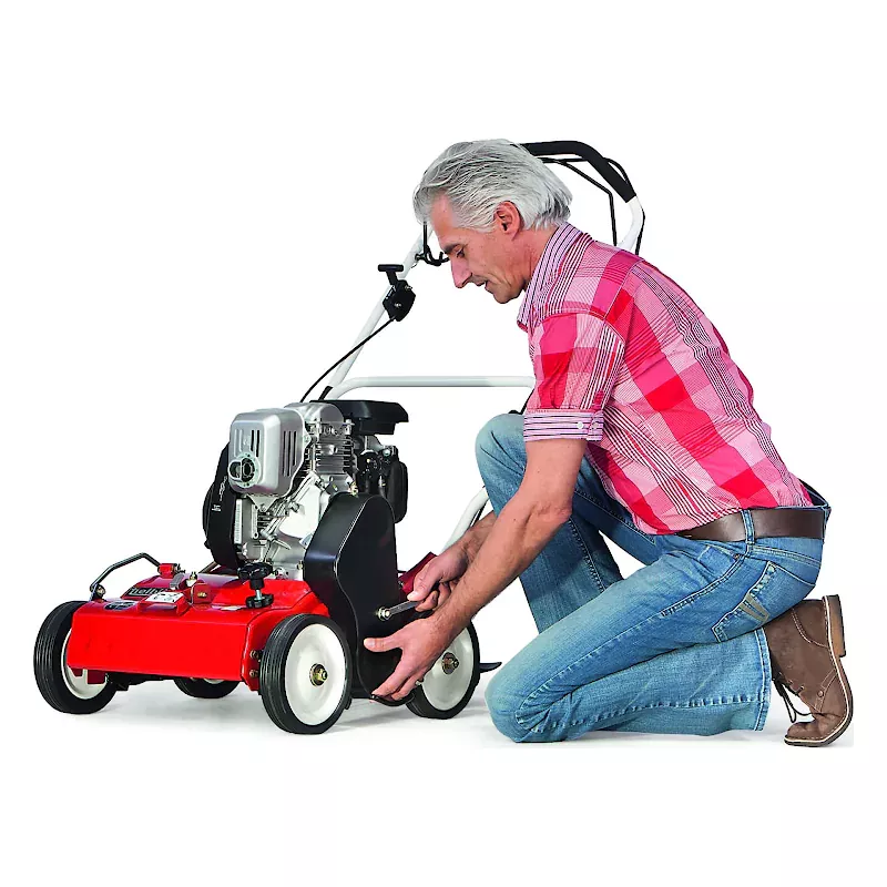 Двигатель Honda GX160 делает агрегат надежным и экономичным. Модель оснащена бесступенчатой регулировкой глубины обработки. Выполняет функции: скарификацию и удаление органических остатков с поверхности. Складная рукоятка способствует удобству хранения и транспортировки скарификатора. Есть возможность установки грабель.