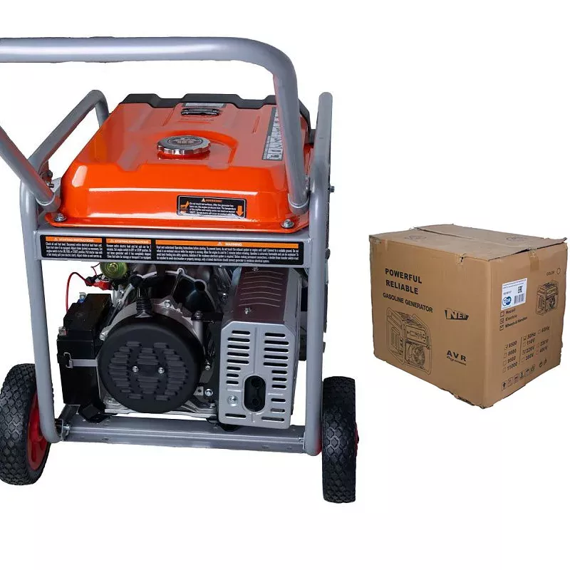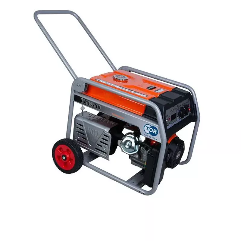 Бензиновый генератор TOR KM6500H 5,0 кВт 220В 33 л. с кнопкой запуска и колесами представляет собой удобный и надежный вспомогательный источник электроэнергии. При правильном обслуживании устройство обеспечивает высокое качество выходного тока.