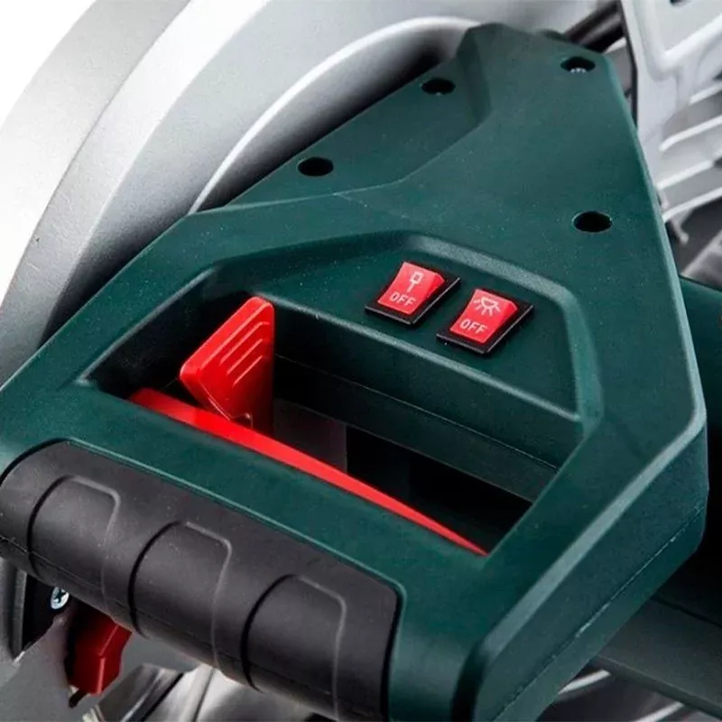 Пила торцовочная Metabo 619003000 осуществляет высокоточный распил заготовок благодаря высокому крутящему моменту – 3700 об/мин и мощности двигателя в 1600/2000 Вт. Распил возможен под углом от 0 до 90 градусов. Торцовочная пила Metabo KS 305M 619003000 характеризуется высокой точностью выполненного распила и уровнем безопасности для пользователя. Для удобной работы вы можете зафиксировать заготовку под нужным углом с помощью фиксаторов. Для защиты оператора во время работы предусмотрены кожух на режущих поверхностях, электронная система торможения и блокировки шпинделя.
