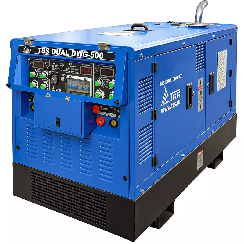 Двухпостовой дизельный сварочный генератор ТСС DUAL DWG-500 в защитном кожухе служит для автономного снабжения одно- и трехфазным током электроприборов и сварочного оборудования. Номинальная выходная мощность составляет 22 кВт. Два поста с одинаковым набором функций обеспечивают работу одновременно двух сварщиков. Диапазон регулировки сварочного тока: 30–500 А, напряжения: 14–39 А. Дизель-генераторная установка предназначена для организации сварочных работ в условиях, где нет постоянного источника энергии.