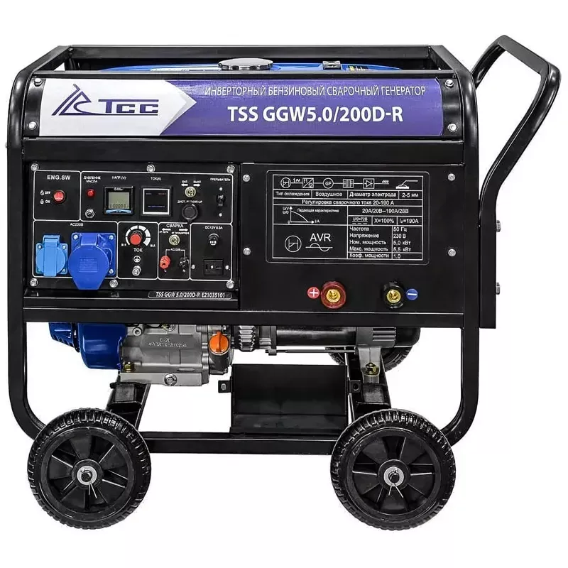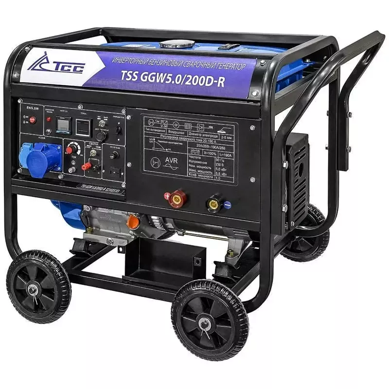 Если вам нужен надежный и мощный сварочный генератор, который может работать в условиях отсутствия стационарной сети электроснабжения, то обратите внимание на бензиновый инверторный сварочный генератор ТСС TSS GGW 5.0/200D-R.