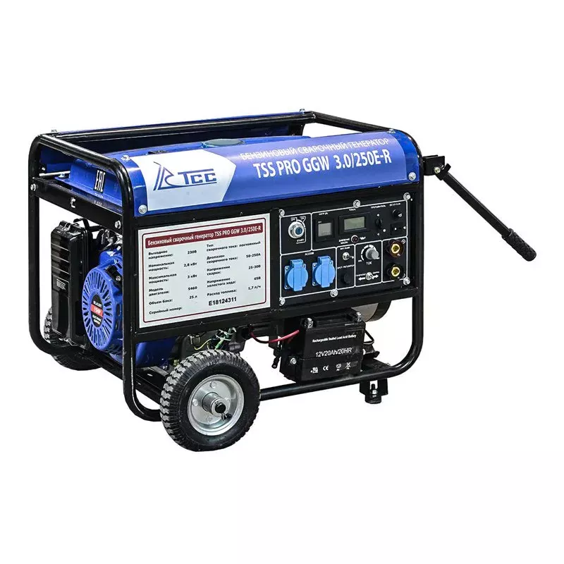 Сварочный бензиновый генератор TSS PRO GGW 3.0/250E-R — предназначен для проведения высококачественной Ручной Дуговой Сварки. Имеет дополнительную функцию - питание электропотребителей.