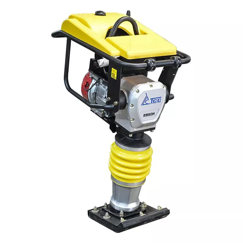 Бензиновая вибротрамбовка TSS RM80H обладает рабочей плитой площадью 345 х 290 мм. Модель подходит для уплотнения грунта траншей, краев тротуара, возле стен и фундаментов, а также других мест, где требуется малогаборитная техника.