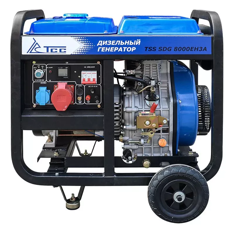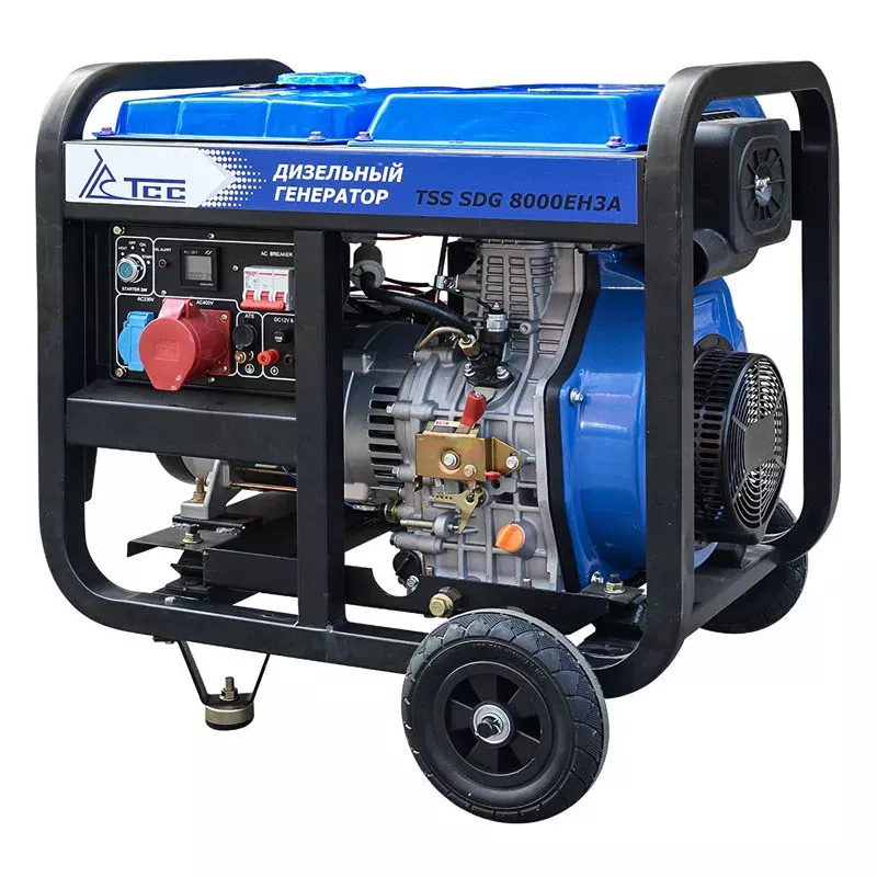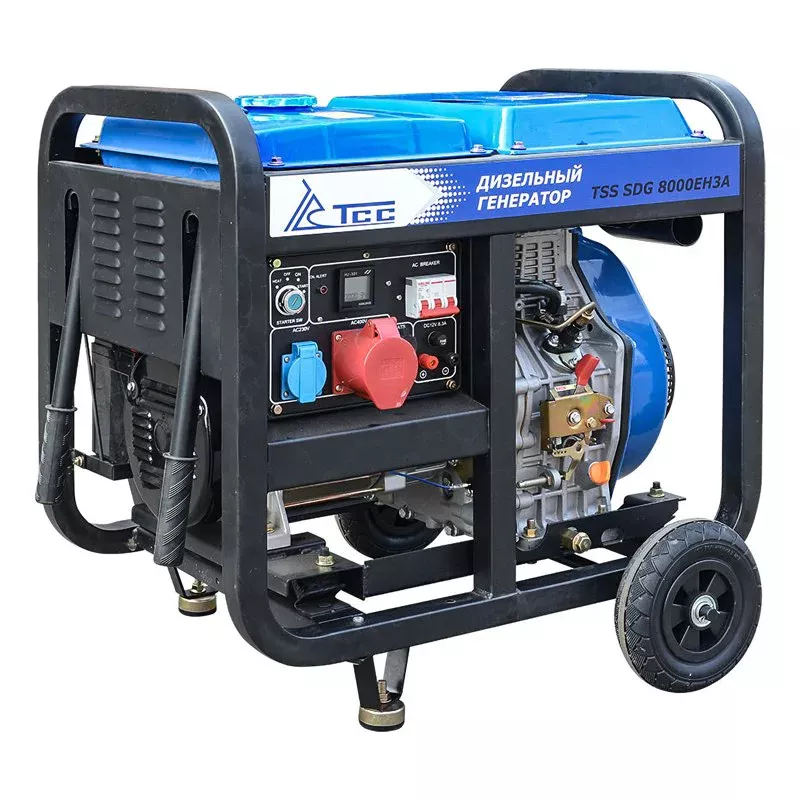 Дизельный генератор ТСС SDG 8000EH3A позволяет подключать потребителей трехфазного тока, совокупная мощность которых составляет 8 кВт. Портативная электростанция пригодится в качестве автономного источника питания на строительной площадке или во время проведения выездных ремонтно-монтажных работ в полевых условиях. Устройство оснащено ручным и электрическим стартерами. Наличие индикации и цифрового дисплея обеспечивает удобство отслеживания рабочих параметров. При подключении только однофазных потребителей полезная снимаемая мощность составит 2,5 кВт.