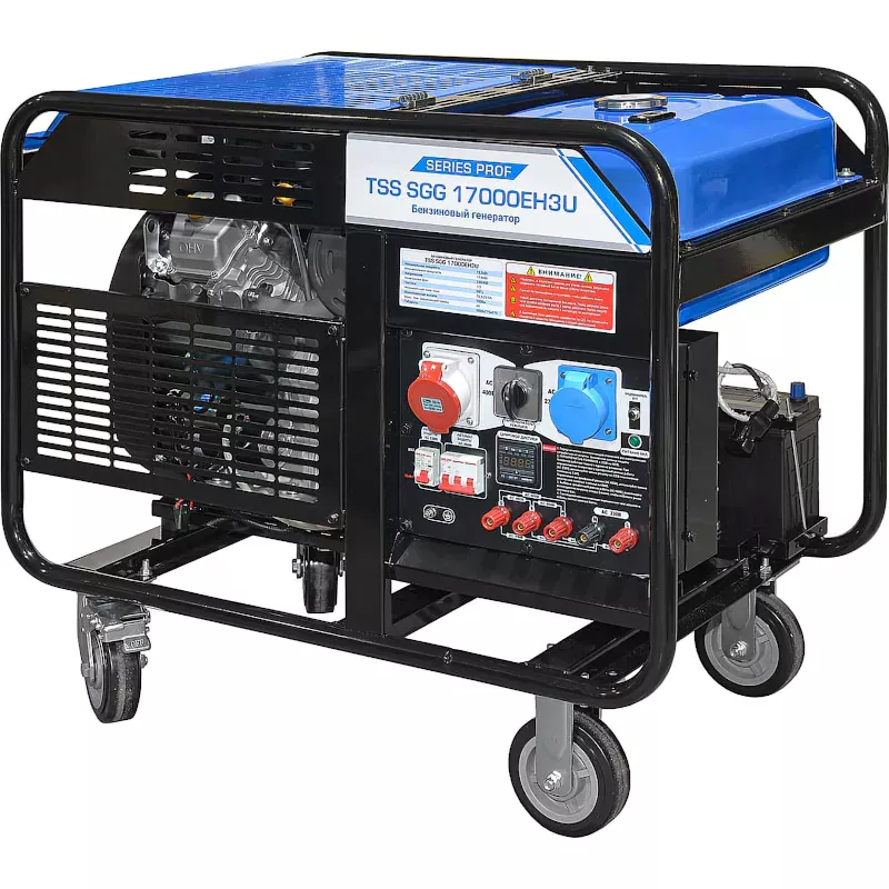 Бензогенератор ТСС SGG 17000EH3U служит автономным источником резервного питания для электрооборудования. Находит широкое применение на ремонтно-строительных, производственных или жилых объектах, где отсутствует постоянное электроснабжение. Для удобства эксплуатации электростанция оборудована переключателем между однофазным и трехфазным током. В обоих режимах работы номинальная мощность составляет 15,5 кВт. Устройство оснащено вместительным баком емкостью 40 л с индикатором уровня топлива.