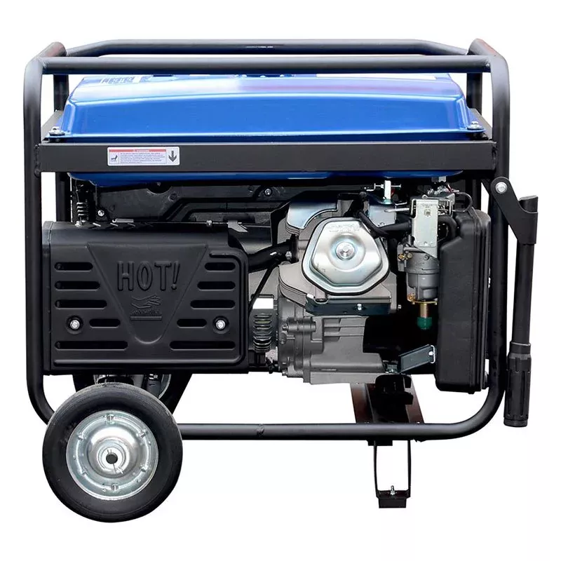 Бензогенератор TSS SGG 6000EHNA легко перемещать по площадке благодаря транспортировочному комплекту, который включает в себя 2 колеса и складную ручку. Модель позволит вам запитать однофазные потребители, суммарная мощность которых не превышает 6 кВт.