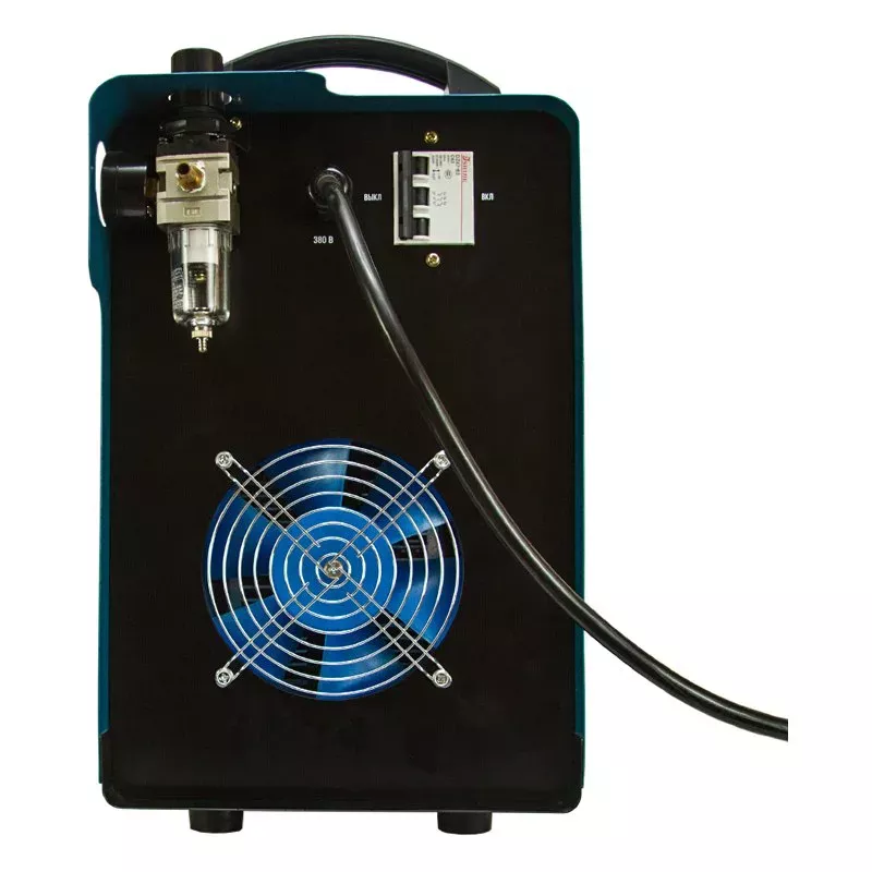 Плазморез отличается простым управлением. Регулятор плавной настройки тока резки позволяет выбрать нужное значение в зависимости от типа сплава и характера выполняемой задачи. Сигнальные лампы предупреждают о готовности к работе или сбое. В случае перегрева срабатывает термозащита, и загорается индикатор. Принудительная вентиляция способствует быстрому охлаждению внутренних компонентов.