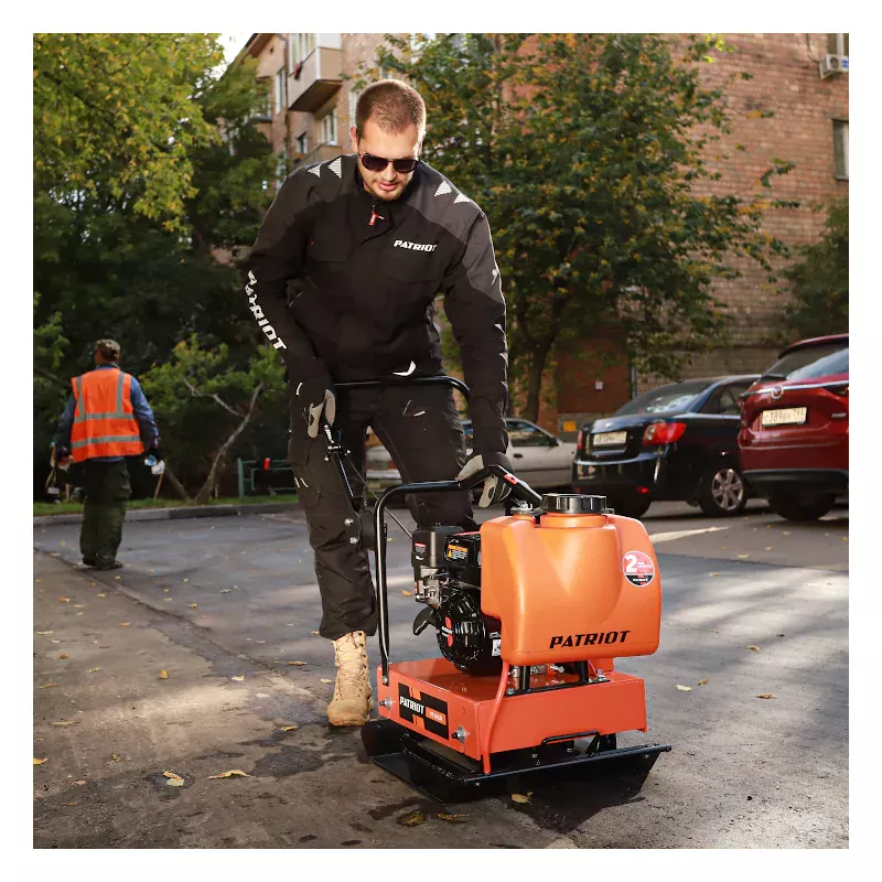 Бензиновая виброплита Patriot VT-90LB прямого хода используется в качестве миниатюрного катка.