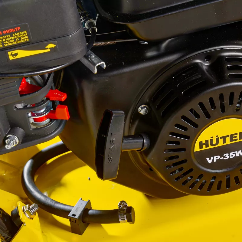 Складной механизм ручки Huter VP-35W обеспечивает хранение машины в небольших помещениях и простую перевозку в место работ. Вставки-демпферы на держателе подавляют вибрации, обеспечивая удобную эксплуатацию.