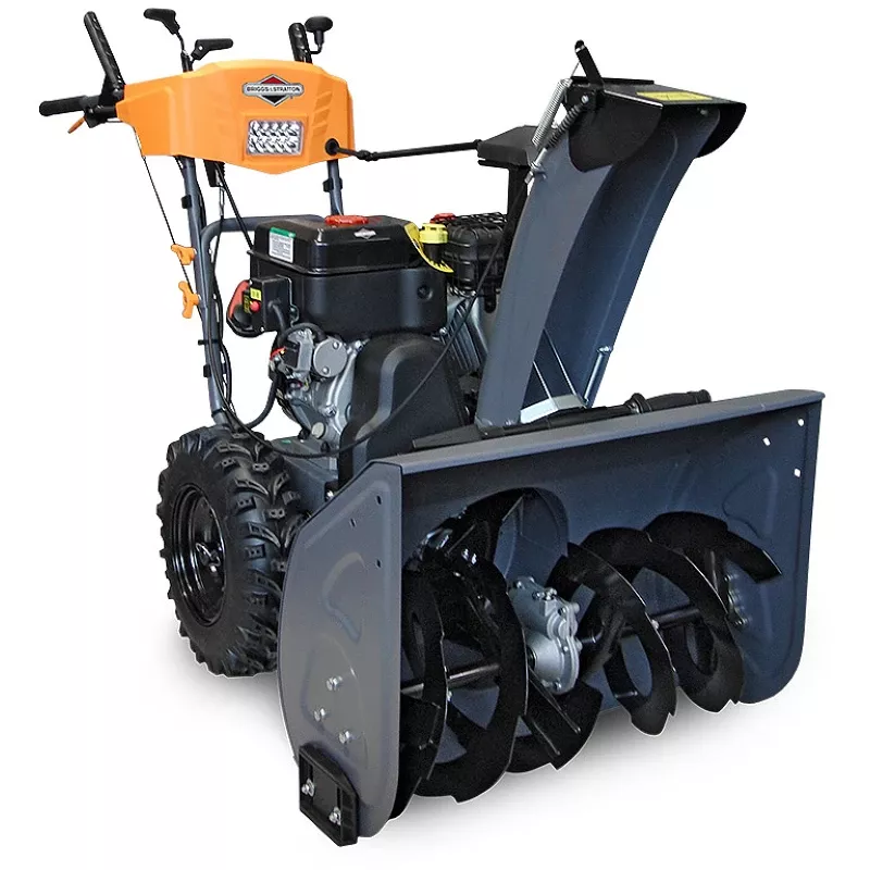 Оснащен мощным двигателем BRIGGS & STRATTON в зимнем исполнении, который обеспечивает уверенную работу снегоуборщика даже при значительной высоте снежного покрова, электростартером, облегчающем запуск даже в сильный мороз, мощной светодиодной фарой для работы в темное время суток.
